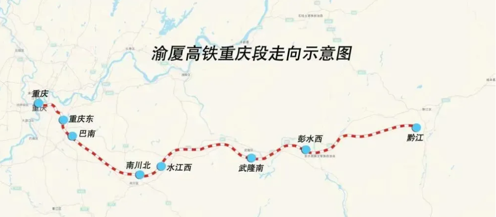 預(yù)計(jì)通車時(shí)間渝廈高鐵重慶段計(jì)劃于2025年通車。
