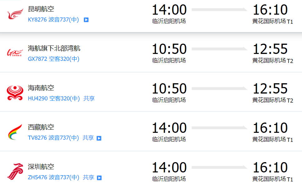 臨沂啟陽(yáng)機(jī)場(chǎng)有直達(dá)湖南長(zhǎng)沙黃花機(jī)場(chǎng),但沒(méi)有直達(dá)張家界荷花機(jī)場(chǎng)航班,以下是啟陽(yáng)到黃花參考: